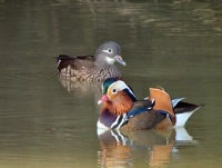 平成22年2月18日小野市民センター近くのバイパスのそばにある小野湖に浮かぶ小島、こもり島にいたオシドリを撮影したものです